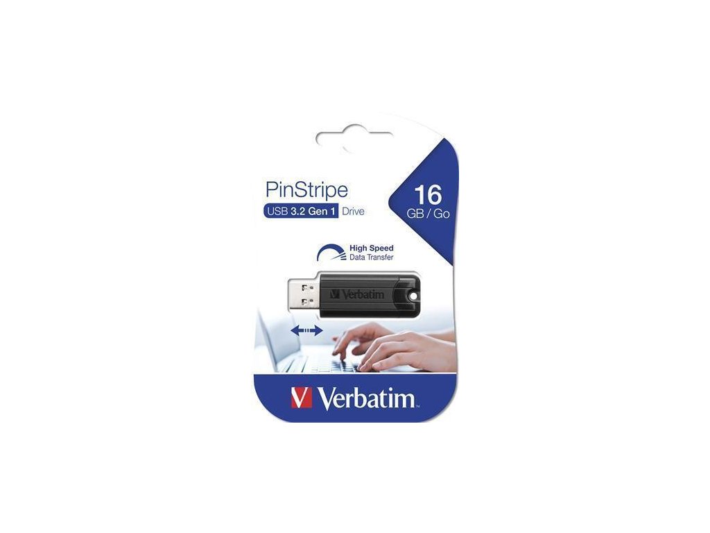16GB USB Flash disk "PinStripe", USB 3.0, VERBATIM, černý