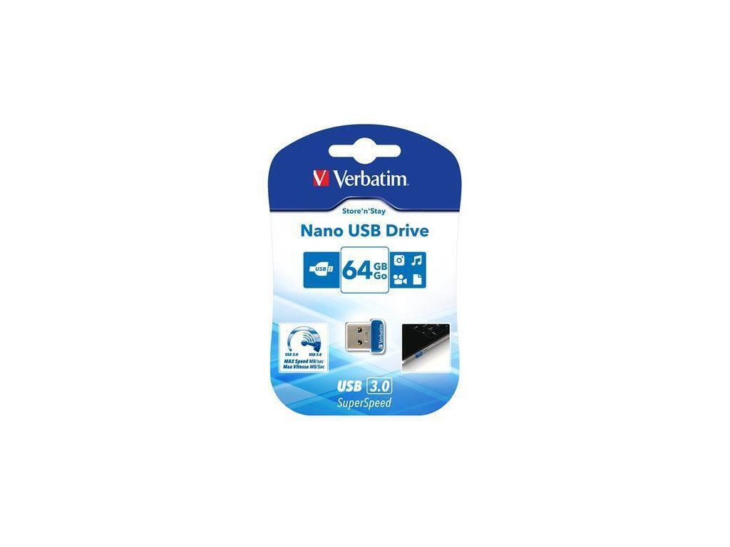 64GB USB Flash 3.0, 80/25 MB/sec, VERBATIM "NANO STORE ´N´ STAY"