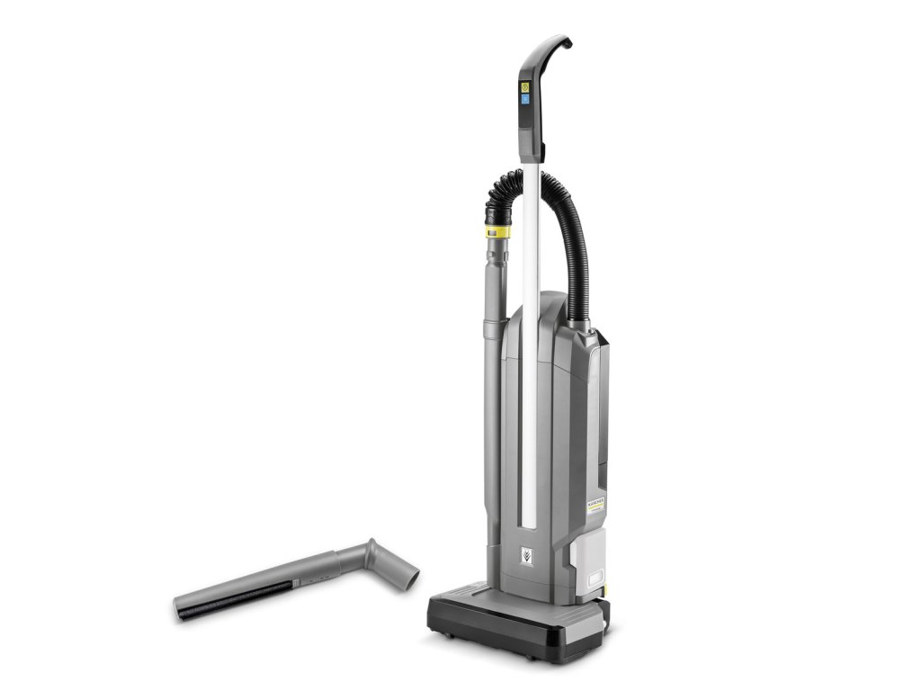 S extra povrchovou hubicí ve standardní výbavě: Profesionální upright akumulátorový vysavač CV 30/2 Bp Adv přesvědčí špičkovými výsledky čištění a uživatelskou přívětivostí. Bezdrátový a kompaktní 3litrový vysavač se díky automatické detekci podlahy dokonale přizpůsobí všem kobercům a tvrdým povrchům. Vlákna textilních podlah jsou důkladně vyčištěna a viditelně narovnána. Díky své mimořádně nízké světlé výšce je bateriový a obratný vysavač ideální pro úklidový personál při úklidu budov nebo v hotelovém sektoru pro úklid pod postelemi a jinými zařízeními. Také praktické: rychlá a hygienická samočisticí funkce válcového kartáče, kterou lze pohodlně aktivovat nožním spínačem. Válečkovým kartáčem zachycené chlupy jsou odděleny a zbytek je pak automaticky vysán. Vypínač ON/OFF, režim eco!efficiency a LED displej zbývající doby chodu baterie na inovativní rukojeti završují stroj. Při objednávce mějte na paměti, že pro CV 30/2 Bp Adv je třeba zvlášť objednat výkonnou baterii Kärcher Battery Power+ a kompatibilní nabíječku baterií. Volitelně je k dispozici vysoce účinný filtr HEPA-14.