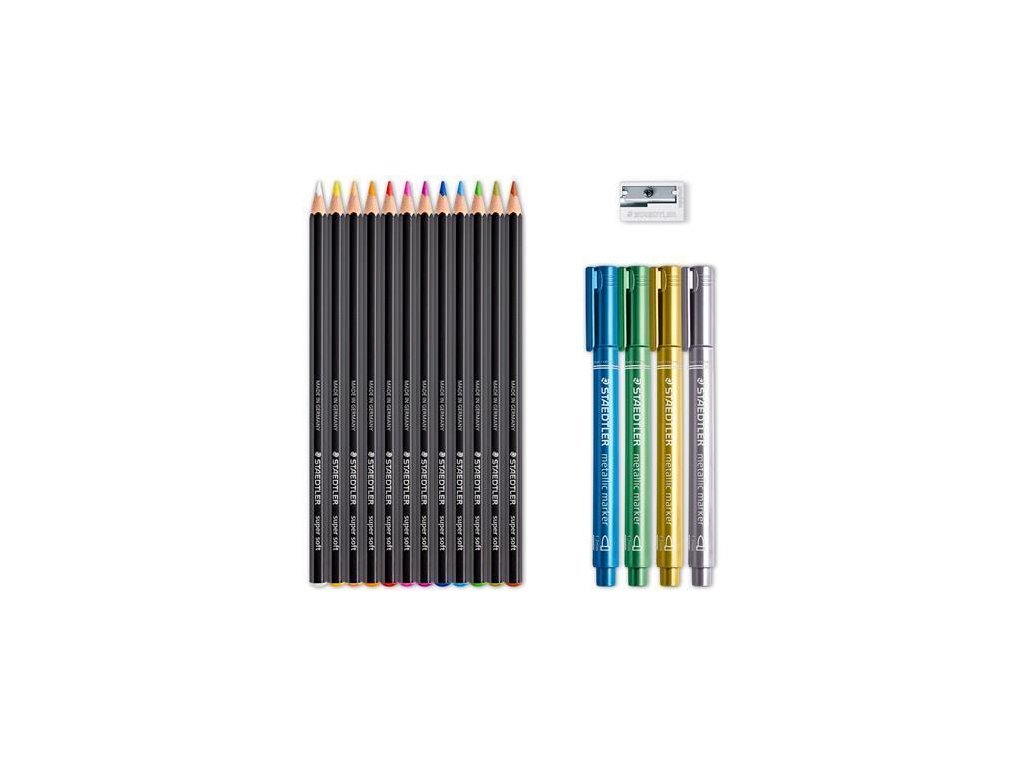 Obsah balení: 12 barevných tužek, 4 metalické dekorační popisovače a 1 ořezávátko