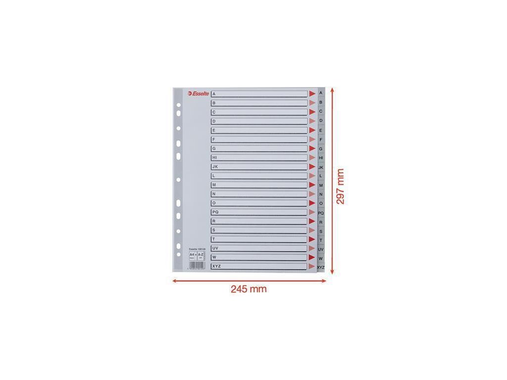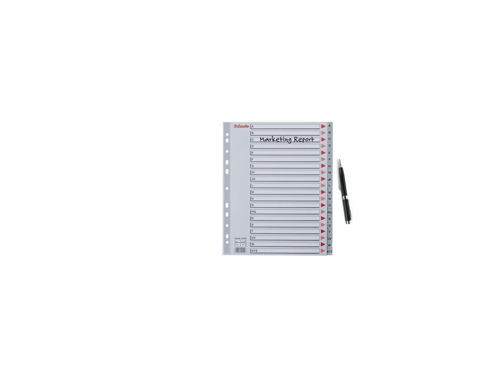 Barevné rejstříky, šedá, A4 Maxi, plast, A-Z, ESSELTE