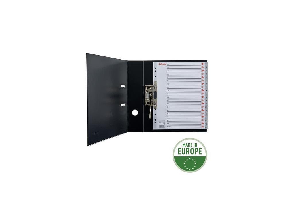 Rejstříky pro číselné roztřídění dokumentů založených v kapsách v pořadačích či deskách do formátu A4 maxi s popisovatelnou titulní stranou. Formát A4 maxi zpřehledňuje orientaci v dokumentech založených v závěsných kapsách. Zesílená multiperforace plastovým proužkem na titulní straně.. 20 dělicích listů se štítky anglické abecedy A-Z pro rychlou orientaci v obsahu. Univerzální multiperforace (11 děr) pro založení do pákového i kroužkového pořadače. Vyrobeno z Polypropylenu (PP) tloušťky 0,12 mm. . . . . . .Značka: ESSELTE