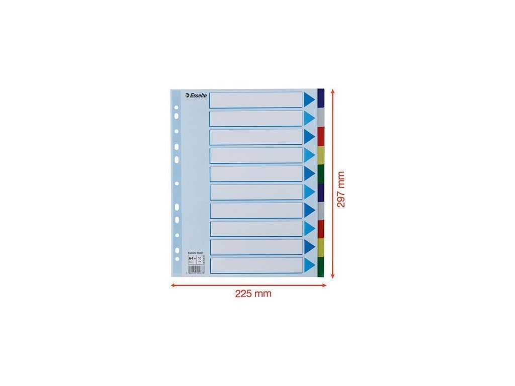 Barevné rozlišovače, mix barev, A4, plast, 10 dílů, ESSELTE