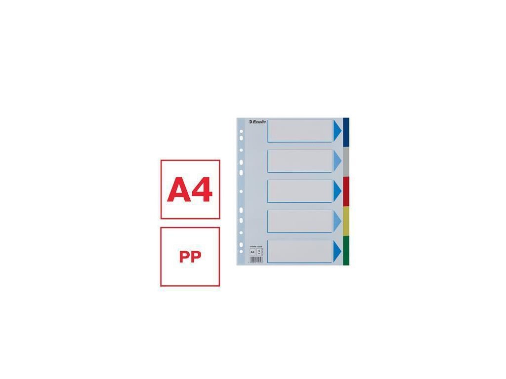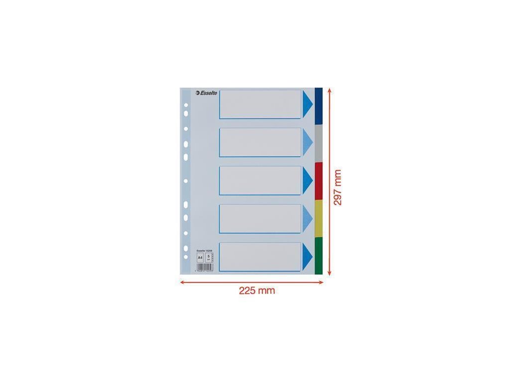 Barevné rozlišovače, mix barev, A4, plast, 5 dílů, ESSELTE