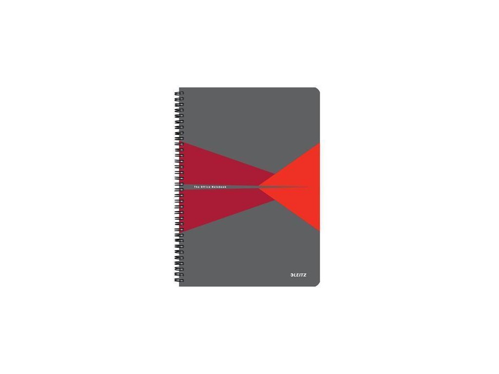Blok "Office", šedo-červená, drátěná kroužková vazba, A4, čtverečkovaný, 90 listů, laminovaný povrch