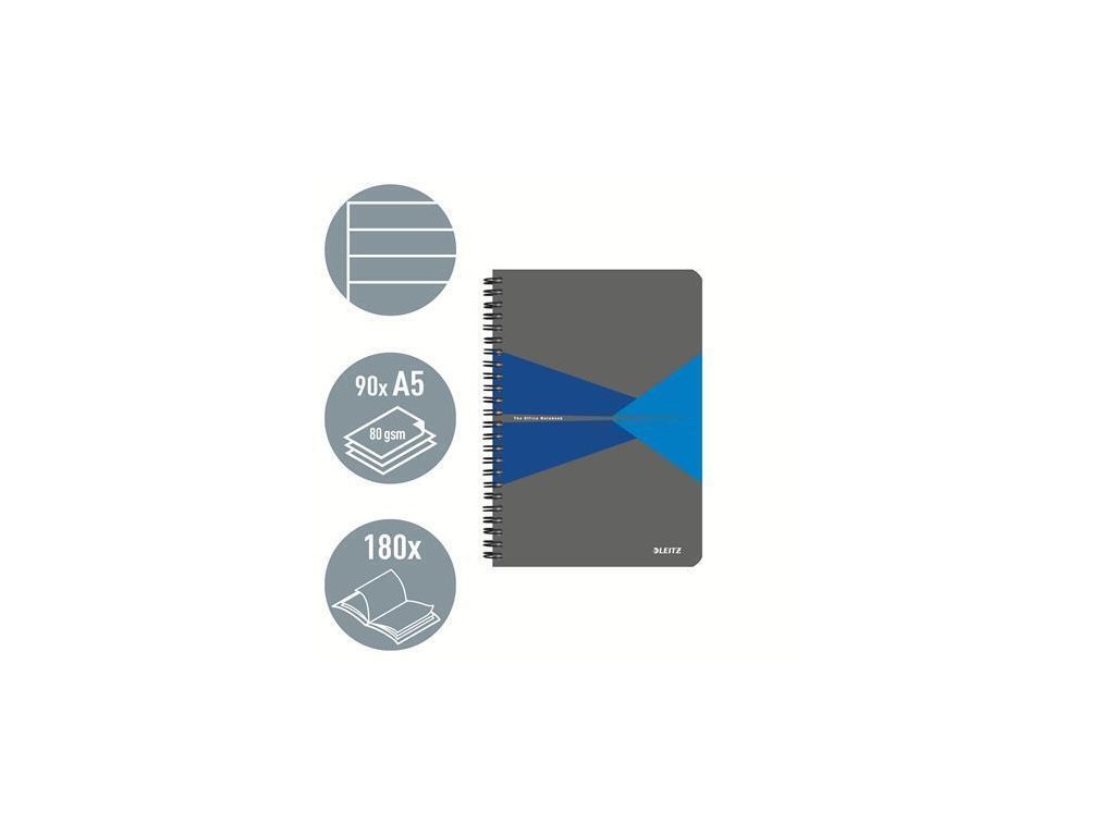 Blok "Office", šedo-modrá, A5, linkovaný, 90 listů, laminovaný povrch, LEITZ