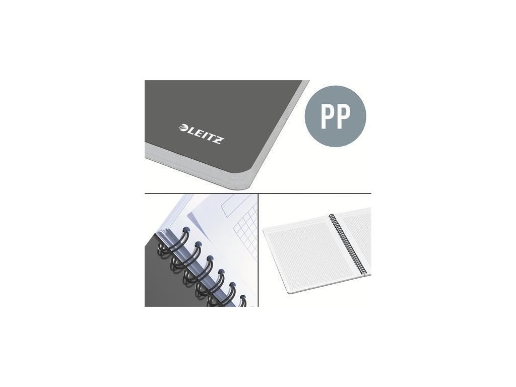 Čtverečkovaný zápisník s drátěnou kroužkovou vazbou pro snazší otáčení listů. Ideální pro každodenní využití.Silná PP obálka/desky s kroužkovou vazbou.