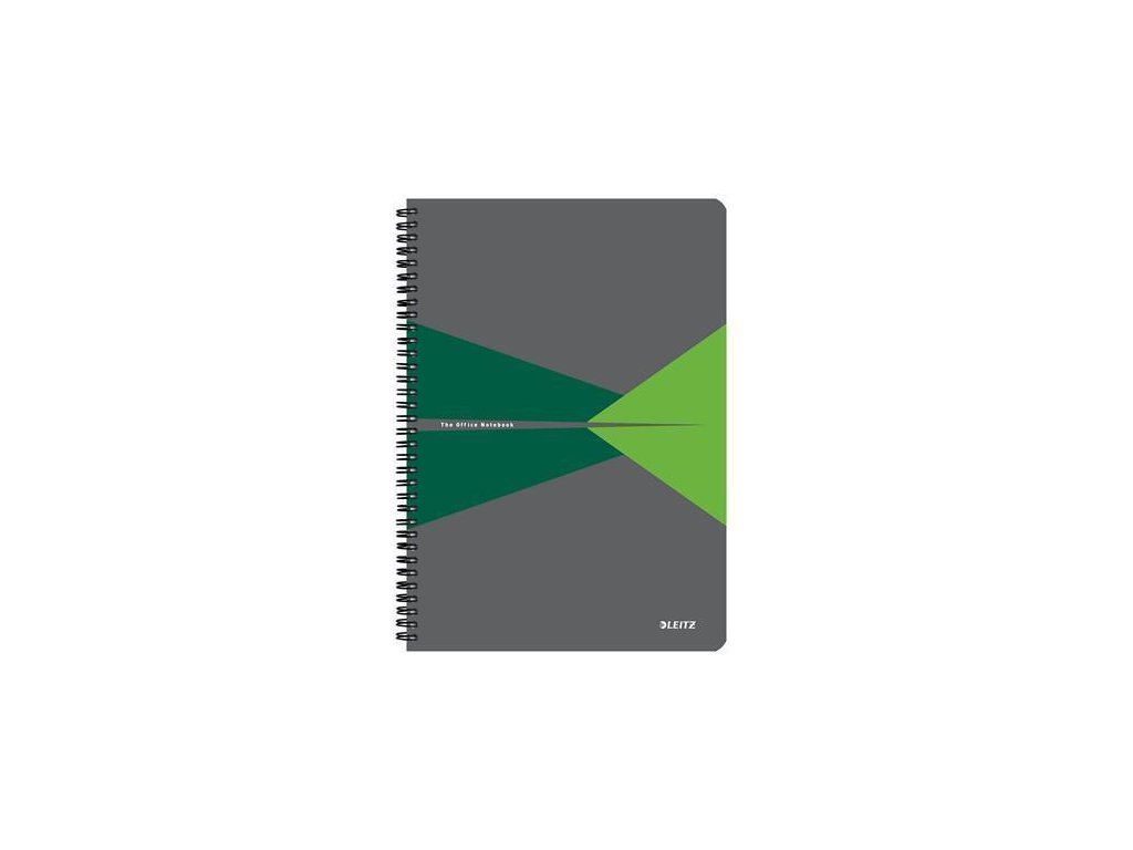 Blok "Office", šedo-zelená, drátěná kroužková vazba, A4, čtverečkovaný, 90 listů, laminovaný povrch,