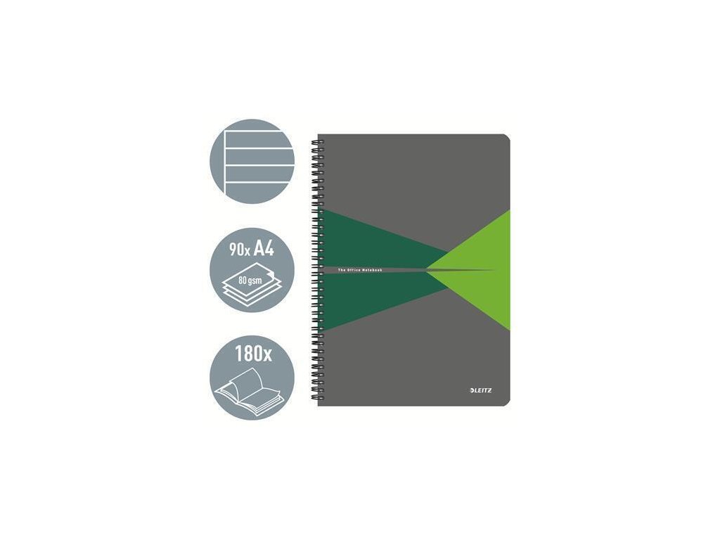 Blok "Office", šedo-zelená, drátěná kroužková vazba, A4, linkovaný, 90 listů, plastový povrch, LEITZ