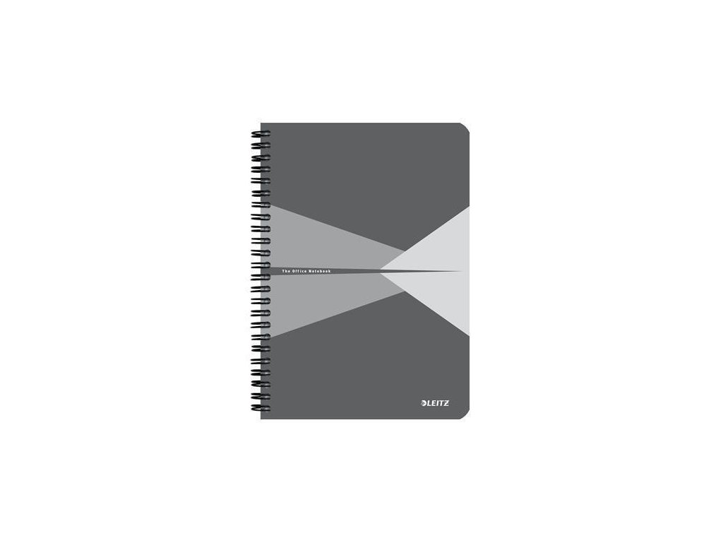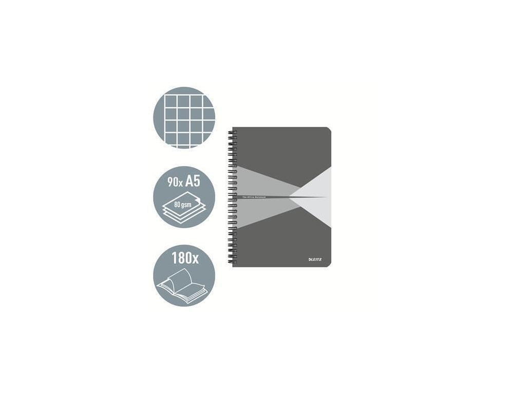 Blok "Office", šedý, drátěná kroužková vazba, A5, čtverečkovaný, 90 listů, plastový povrch, LEITZ