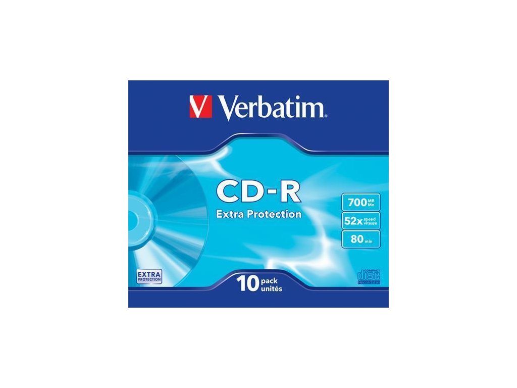 CD-R 700MB, 80min., 52x, DL Extra Protection, Verbatim, slim box, 10ks/bal.