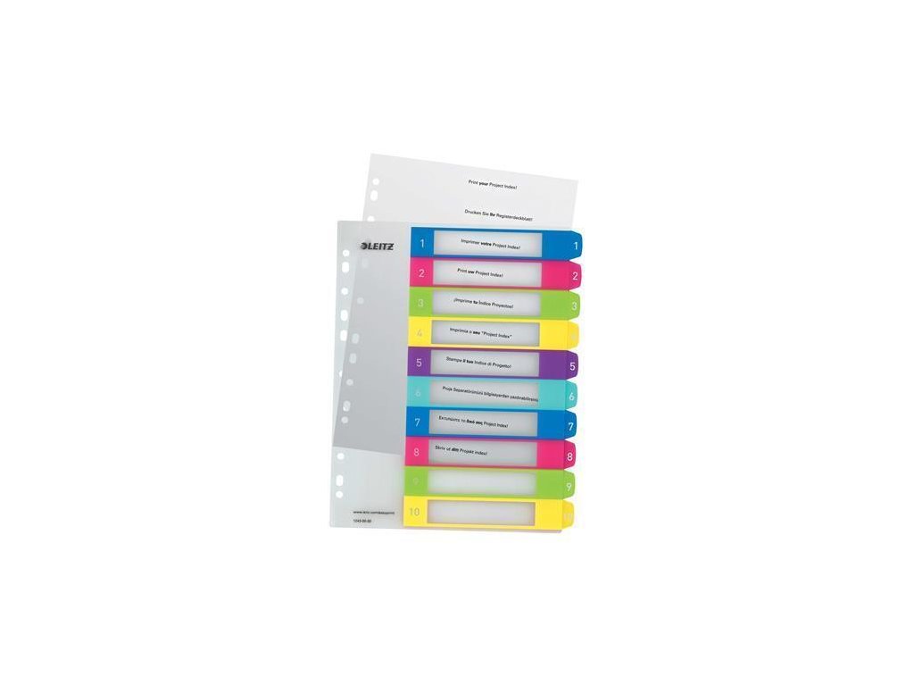 Opakovatelně použitelný a extra odolný plastový rejstřík v zářivých barevných kombinacíchPotisknutelný na PC pro upravení dle vlastních potřeb