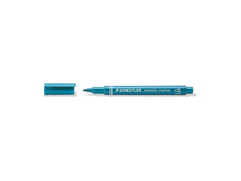 Dekorační popisovač, metalická modrá, 1-2 mm, kuželový hrot, STAEDTLER