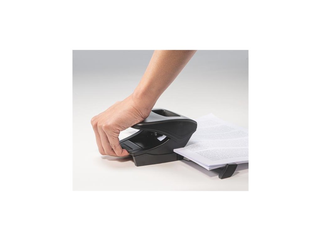 Celokovová stolní děrovačka pro každodenní použití.Patentovaný úchyt a ostřejší děrovací segmenty pro menší sílu při děrování.
