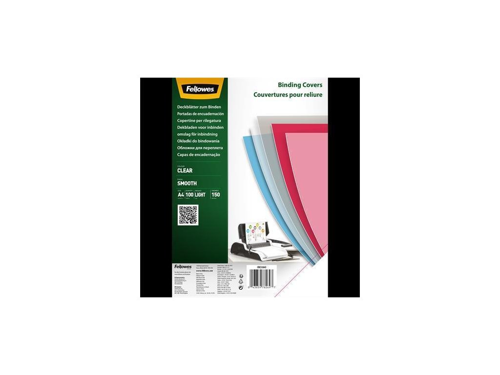 Desky do kroužkové vazby, transparentní, A4, 150 mikronů, PET, FELLOWES 5384501