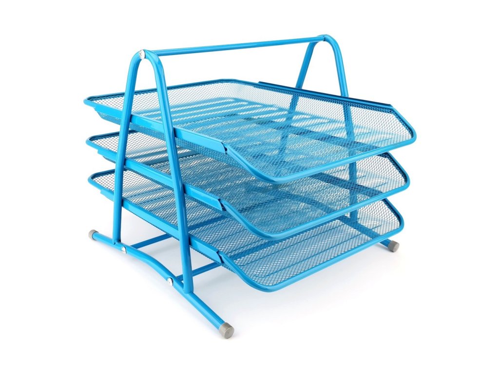 Drátěný trojbox na dokumenty, světle modrý