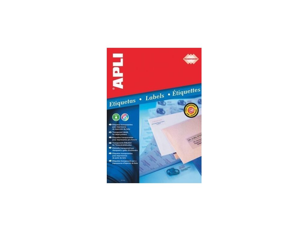 Etiketa, 48,5 x 25,4 mm, průhledná, polyester, zaoblené rohy, 440ks/bal., APLI
