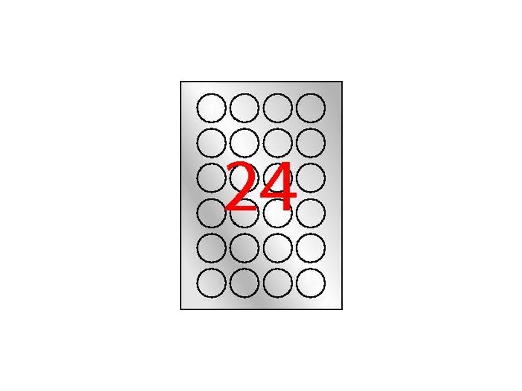 Etiketa, stříbrná, kruhová, průměr 40mm, voděodolná, PP, 480ks/bal., APLI