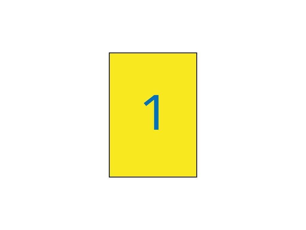Etiketa, žlutá, 210 x 297 mm, voděodolná, polyester, 20 ks/bal., APLI 12877