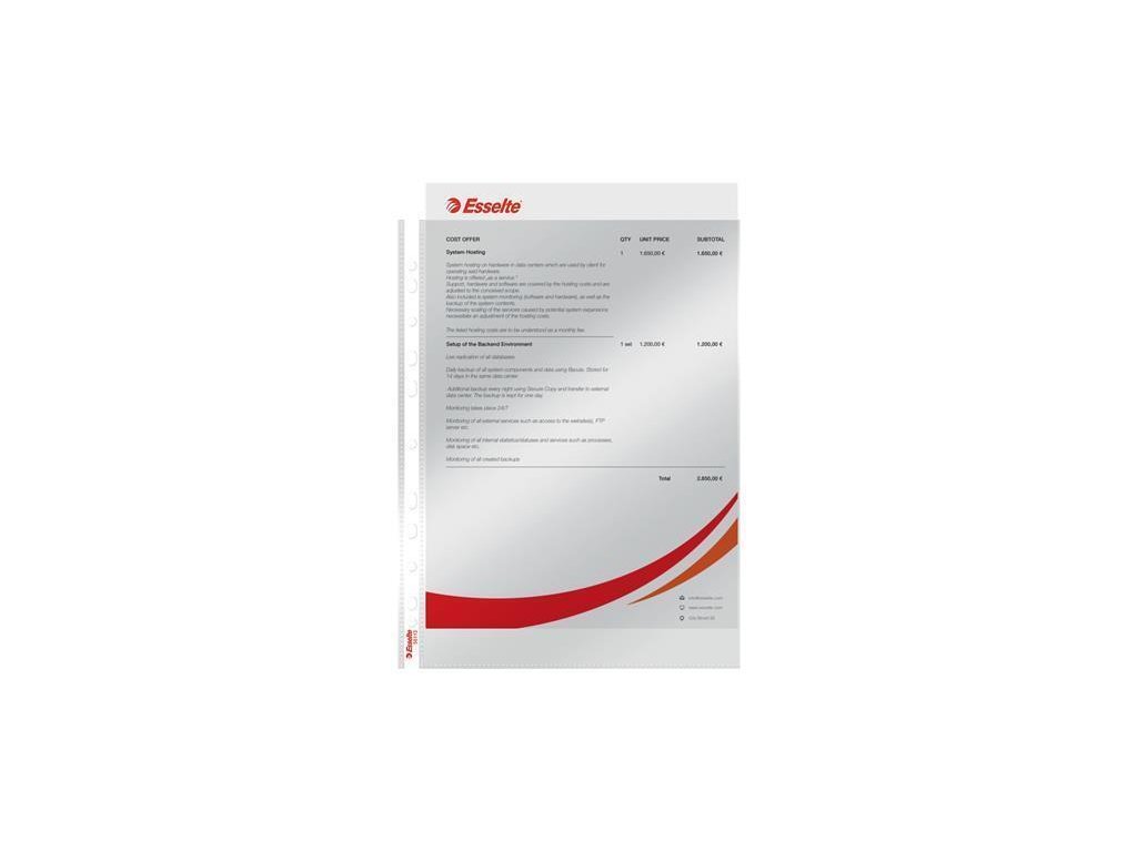Kvalitní euroobaly "Luxus" od ESSELTE pro každodenní použití a běžnou archivaci dokumentů v pákových a kroužkových pořadačích.Otevíratelné nahoře, díky čemuž lze dokumenty snadno vyjmout i v samotném pořadači