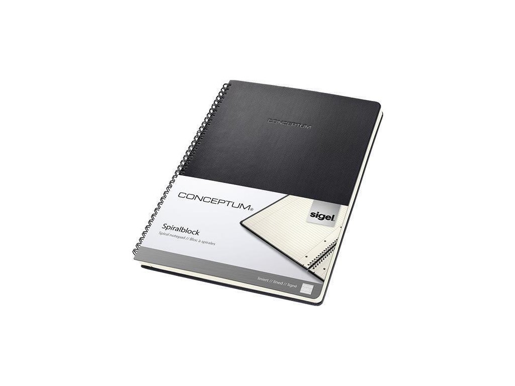 Exkluzivní spirálový sešit "Conceptum", černá, A4, linkovaný, 80 listů, tvrdé desky, SIGEL CO821