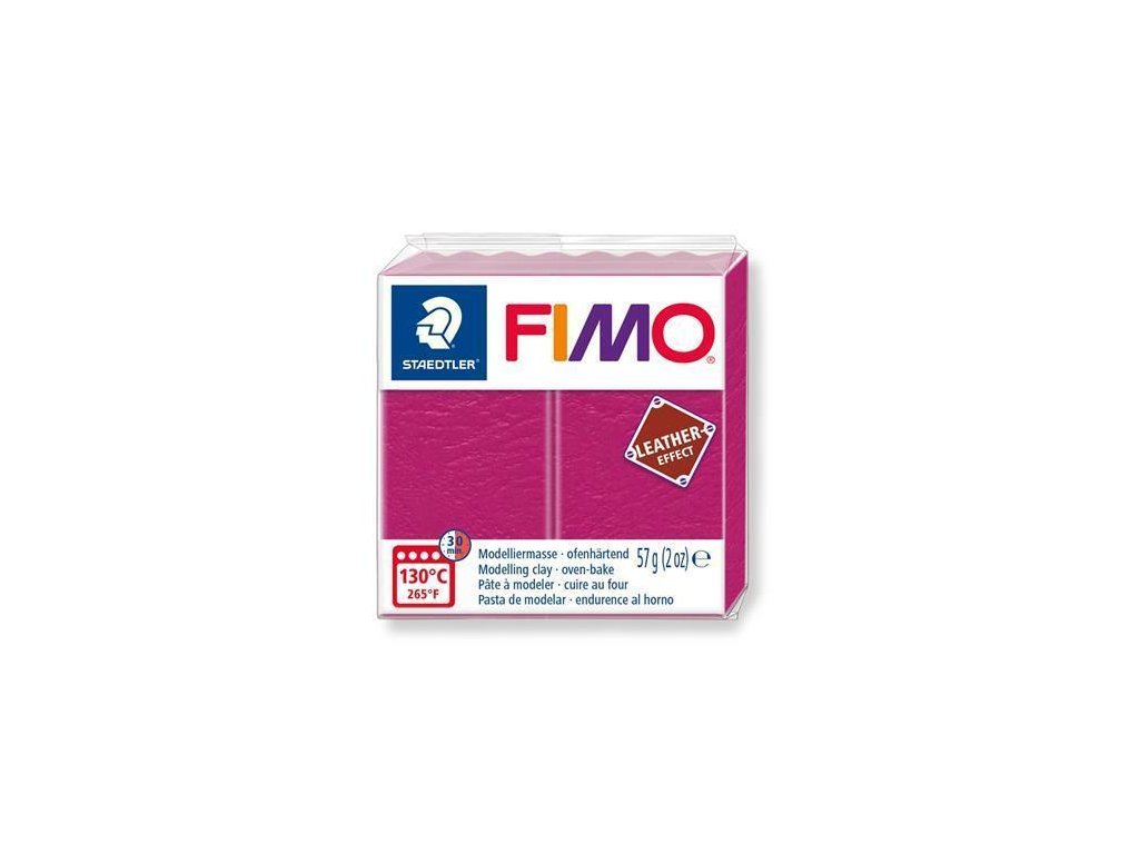 Nový typ FIMO® Leather Effect napodobuje vzhled a texturu pravé kůže. To znamená, že na rozdíl od stávajících polymerních hmot FIMO®, může být po vytvrzení řezán, šit, pleten, ražen a dokonce propichován. Ve skutečnosti může být zpracován přesně jako kůže nebo textilní materiály, což dává uživateli úžasný prostor pro vytvoření jedinečných náhrdelníků, náramků, kabelek a předmětů pro domácnost. Vzrušující a extrémně všestranný nový modelovací materiál.Lze míchat s FIMO Soft, Professional and Effect