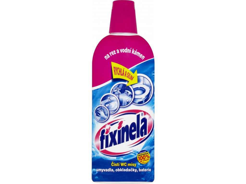Fixinela 500 ml odstraňuje rez a vodní kámen s extrémní silou a rychlostí. Tekutý kyselý čistič na WC mísy, umyvadla, vany, obklady, vodovodní baterie. Účinně čistí, ničí bakterie, rozpouští vodní a močový kámen, odstraňuje rez a další usazeniny. Fixinela má vysoký čistící účinek, snadno a rychle uvolňuje špínu a usazeniny z povrchu.