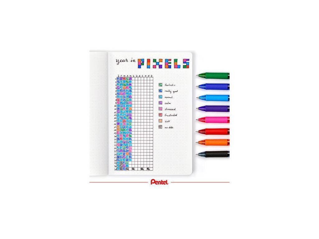 Psaní veselými barvami je radost! Pero je vhodné pro BUJO (Bullet Journal). Lehké, plastové tělo pera a pogumovaná rukojeť v barvě inkoustu.Rychleschnoucí inkoust