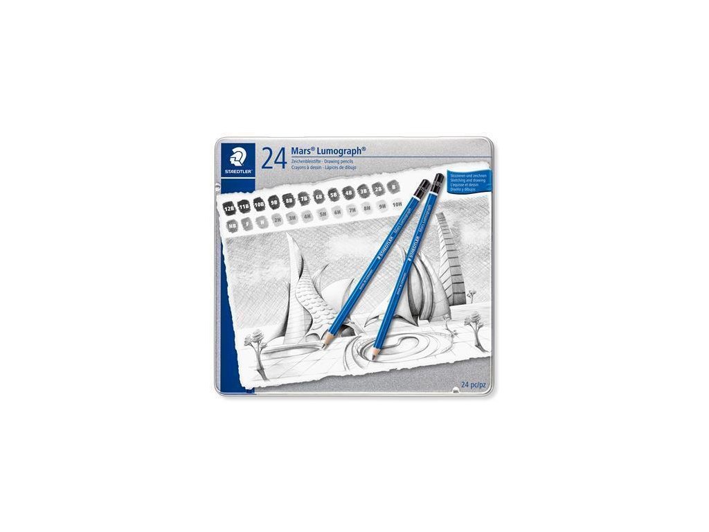 Grafitové tužky "Mars® Lumograph® 100", 24 tvrdostí, šestihranná, umělecká, STAEDTLER 100 G24