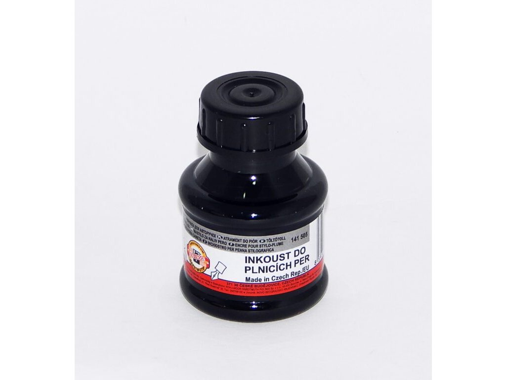 Černý inkoust balený v 50 g plastové lahvičce určený do plnicích per a sloužící pro ruční psaní na papír.