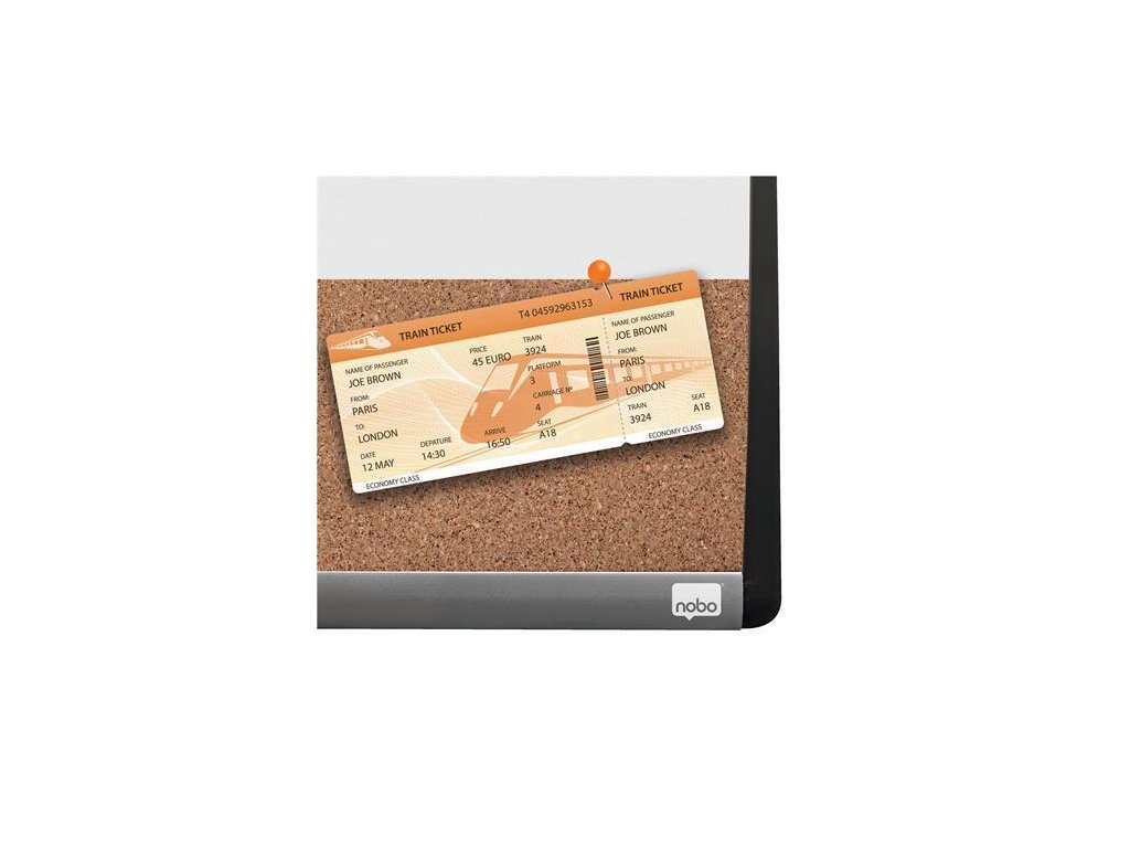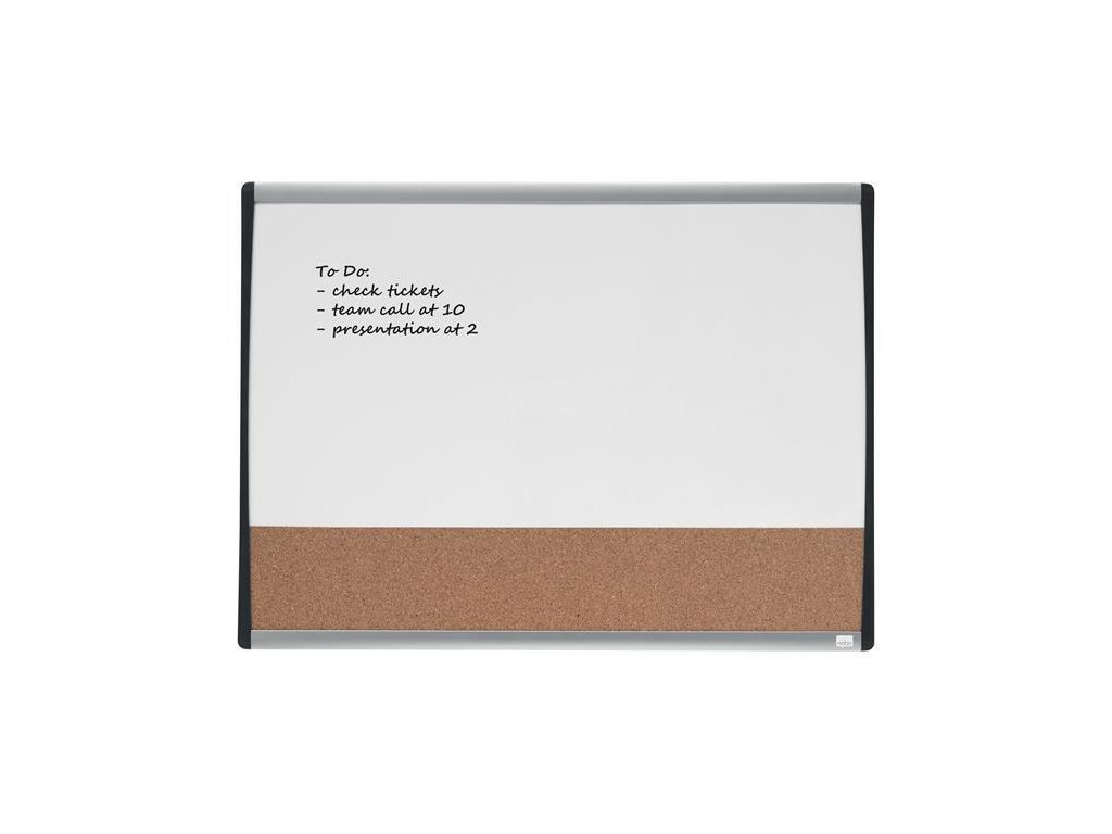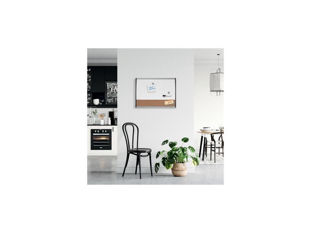 Kombinovaná tabule je tvořena magnetickou tabulí stíratelnou za sucha a částí s korkovou nástěnkou. Obě části jsou zasazeny do výrazného černého a stříbrného rámu s kulatými rohy.Součástí balení je jeden magnetický černý popisovač s mazací houbou a dva magnety.