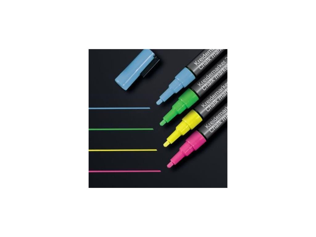 Křídový popisovač, 4 různé barvy, 1-2 mm, kuželový hrot, tekutý, SIGEL BA179