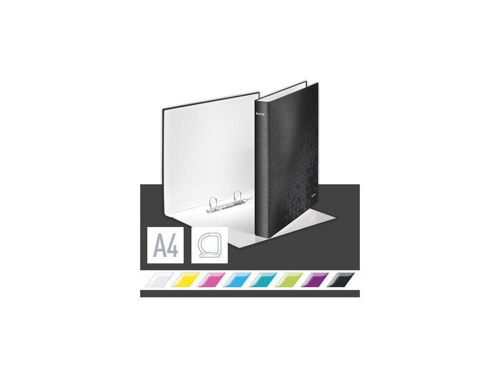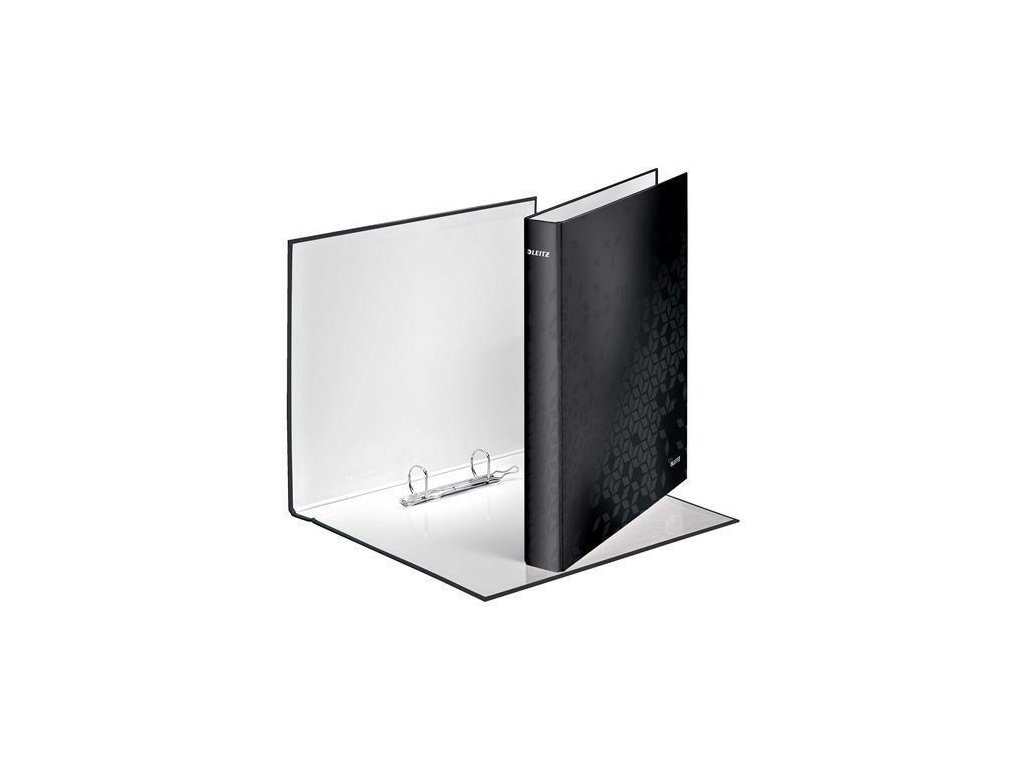 Kroužkový pořadač "Wow", černá, lesklý, 2 kroužky, 40 mm, A4, karton, LEITZ