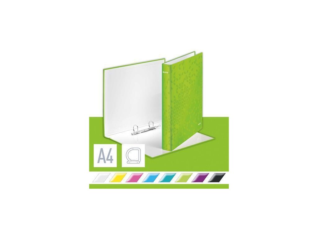 Kroužkový pořadač "Wow", zelená, lesklý, 2 kroužky, 40 mm, A4, karton, LEITZ