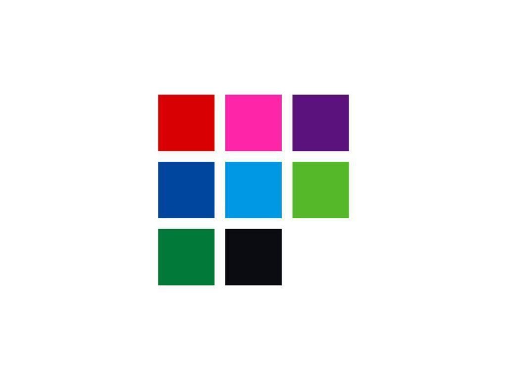 Barva: červená, purpurová, fialová, modrá, světle modrá, světle zelená, zelená, černá
