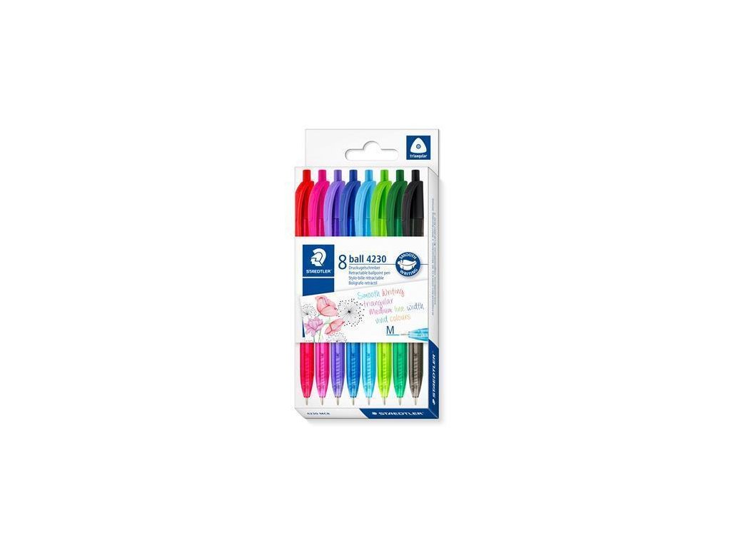 Kuličkové pero "4230 M", sada, 8 barev, 1 mm, výsuvné, trojúhelníkový tvar, STAEDTLER 4230 MC8