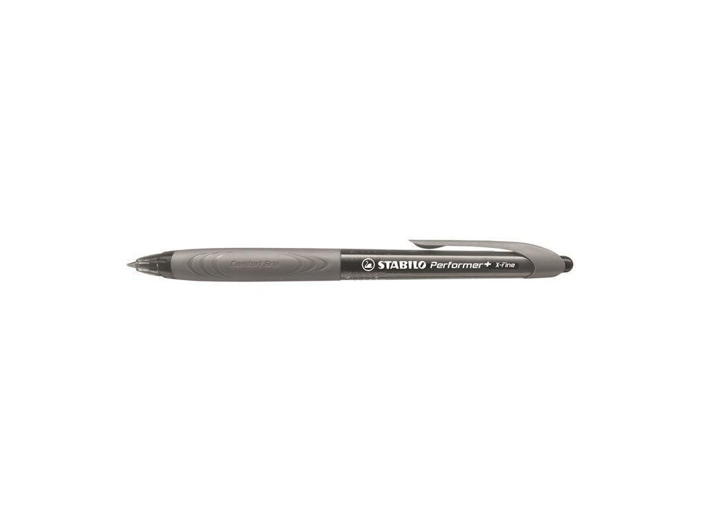 Kuličkové pero "Performer+", šedé tělo, 0,38m, stiskací mechanismus, STABILO, modrý ink.