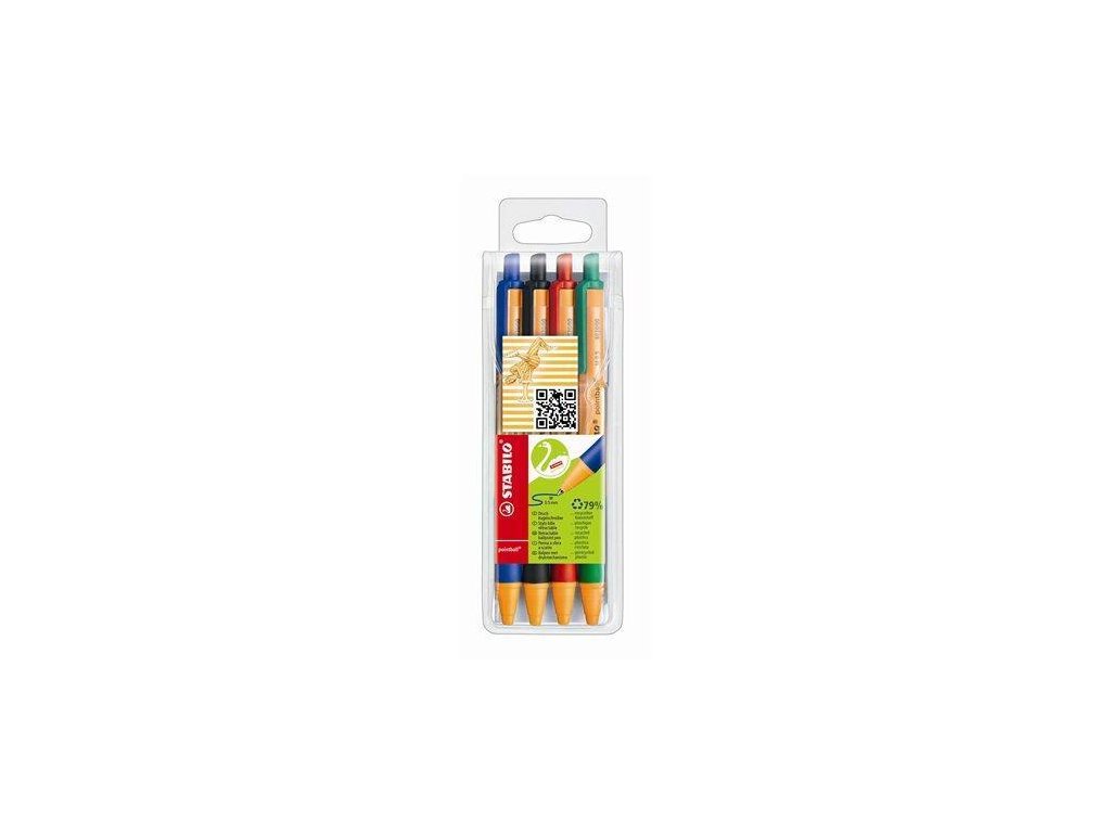 Kuličkové pero "Pointball", 4 různé barvy, 0,5mm, stiskací mechanismus, STABILO