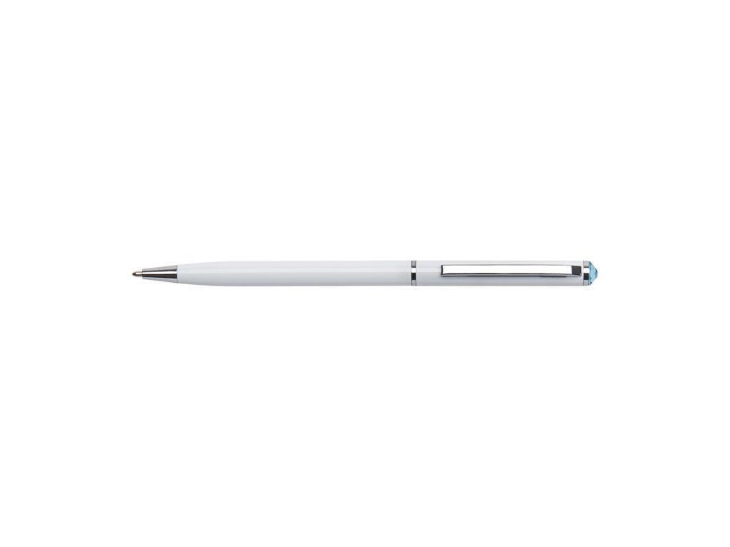 Kuličkové pero "SWS SLIM", bílá, modrý krystal SWAROVSKI®, 13 cm, ART CRYSTELLA® 1805XGS556