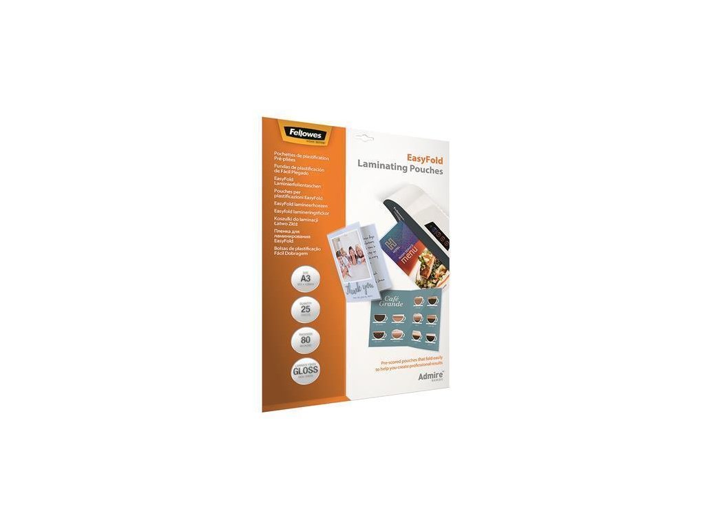 Laminovací fólie "Admire Easyfold", 80 mikronů, A3, lesklá, skládaná, 25 ks, FELLOWES
