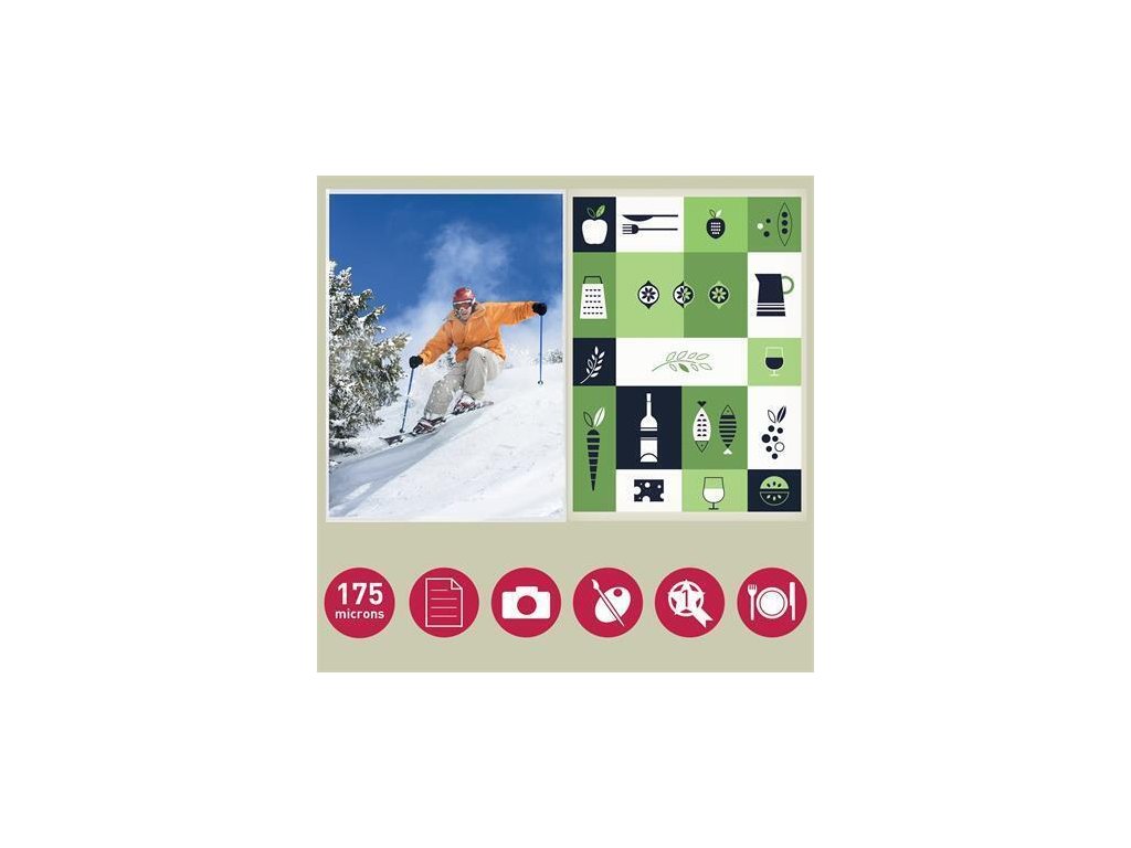 Dlouhodobá ochrana zalaminovaných dokumentů před nečistotou, tekutinou a vlhkostí. Velmi vysoká tuhost laminace.