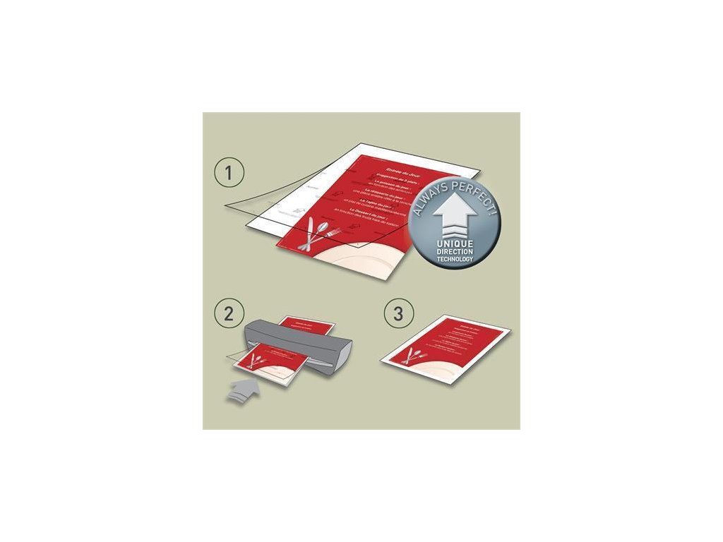 Již žádné obavy, že vložíte kapsu do laminátoru nesprávným směrem. Jedinečná směrovací technologie (UDT) přináší dokonalé výsledky. Kapsy nejvyšší kvality chrání zalaminovaný dokument.Unikátní směrovací technologie navádí ke správnému vložení kapsy ve směru šipek, které jsou umístěny na kapse a které po laminaci zmizí.