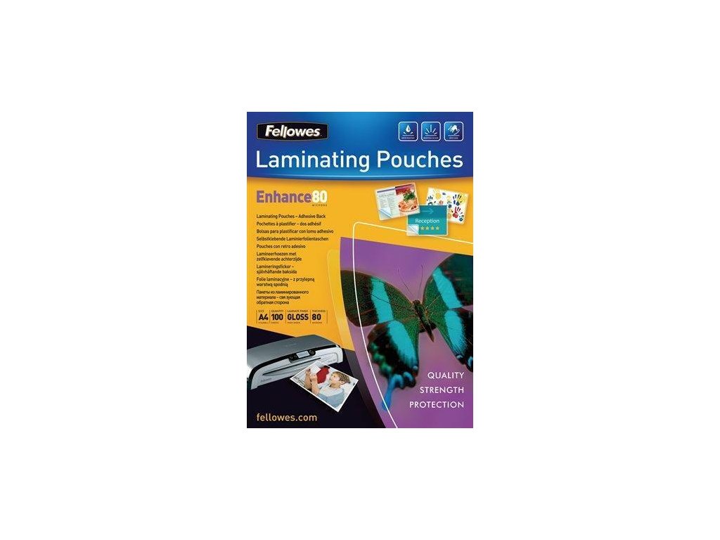 Laminovací fólie, lesklá, A4, 80 micron, samolepící, FELLOWES
