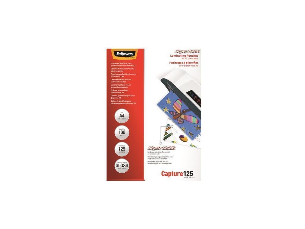 Laminovací fólie "SuperQuick", lesklá, A4, 125 micron, FELLOWES
