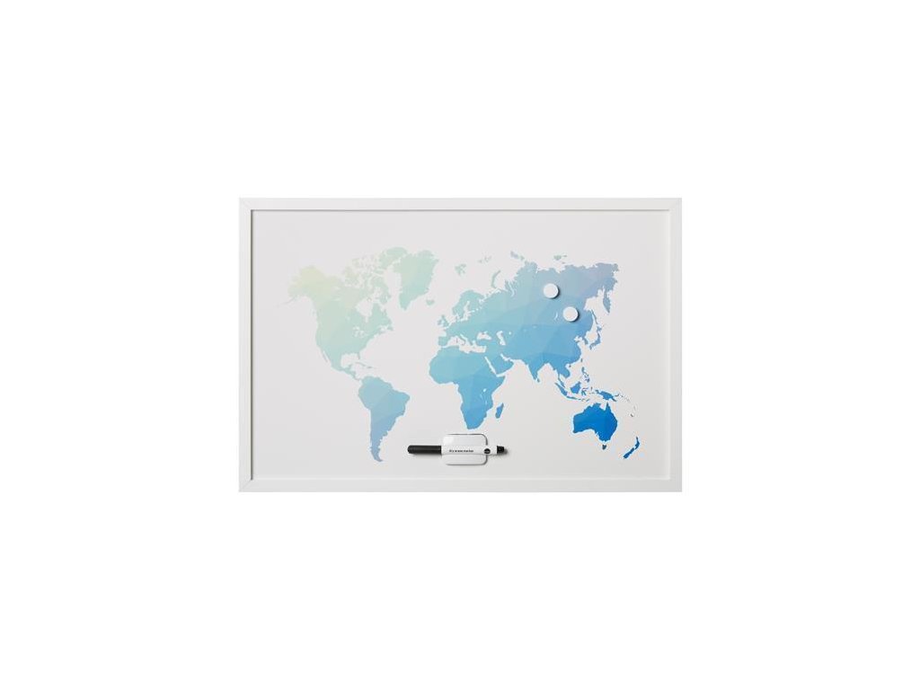 Magnetická tabule "World Map", bílá, s rámem, 60x40 cm, VICTORIA