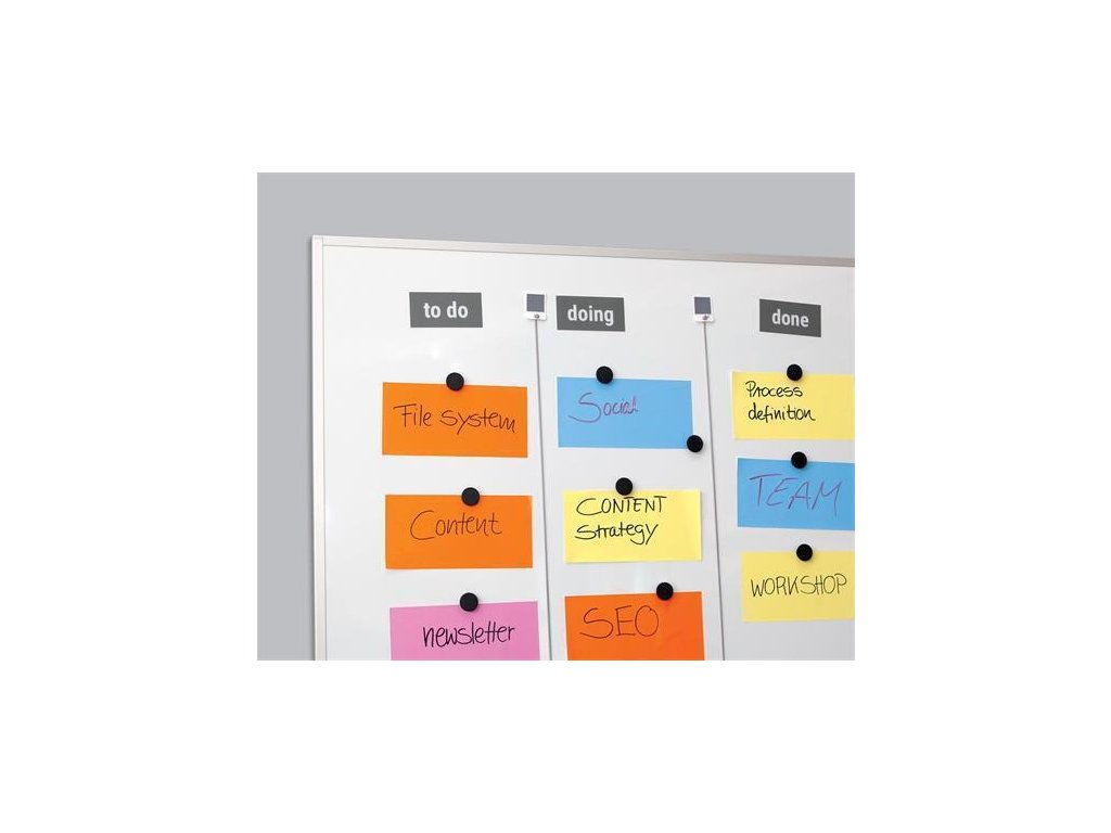 Silné magnetky, kulatého tvaru jsou vhodné pro uchycení až 4 listů formátu A4 k magnetickým tabulím.Barva: černá