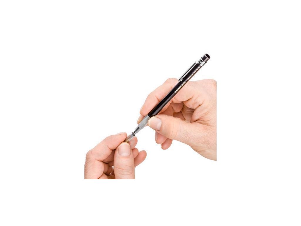 Mechanická tužka Staedtler Mars technico pro profesionální kreslicí design.Tlačítko má vestavěnou brusku tuhy (stačí sejmout horní tlačítko pera, vložit tuhu do kovového otvoru a nabrousit hrot).