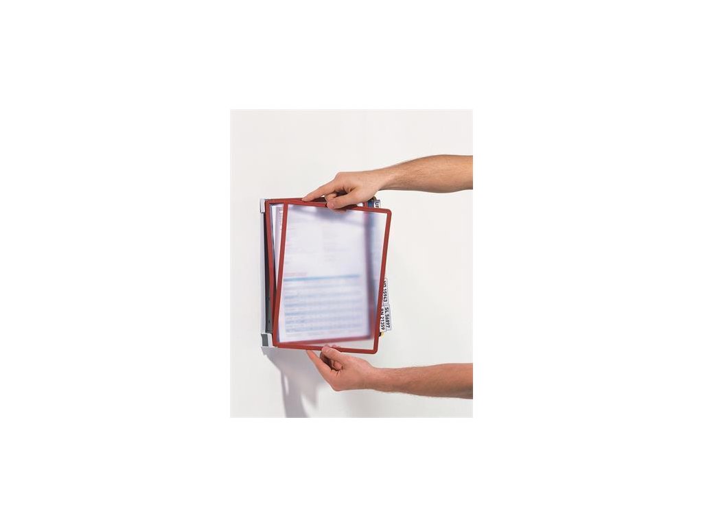 Nástěnný držák pro montáž na stěnu s 10 displejovými panely SHERPA. Polypropylenové panely s barevným profilovým rámem a nízko reflexní fólií vhodné pro skenery. Praktický otočný mechanismus pro jednoduchou výměnu panelů. Ideální pro dílny, výstavní a prodejní prostory.Formát: A4