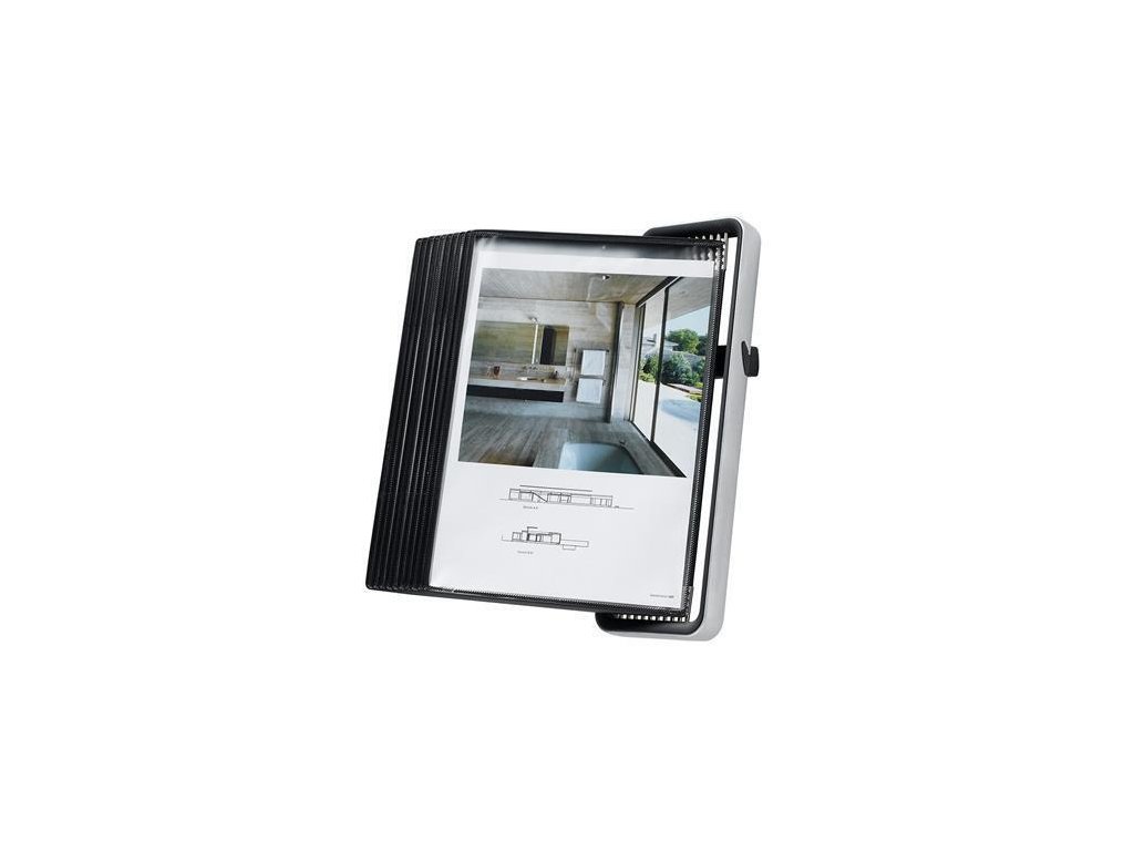 Nástěnný držák "Veo", stříbrno-černá, A4, 10 prezentačních kapes, DJOIS F714517