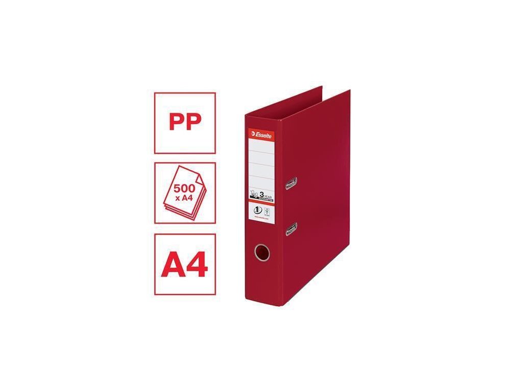 Vysoce kvalitní pákový pořadač, vybavený silnou mechanikou Esselte No. 1, s vylepšenými ergonomickými a uživatelskými výhodamiPotaženo odolnou a omyvatelnou PP fólií z obou stran